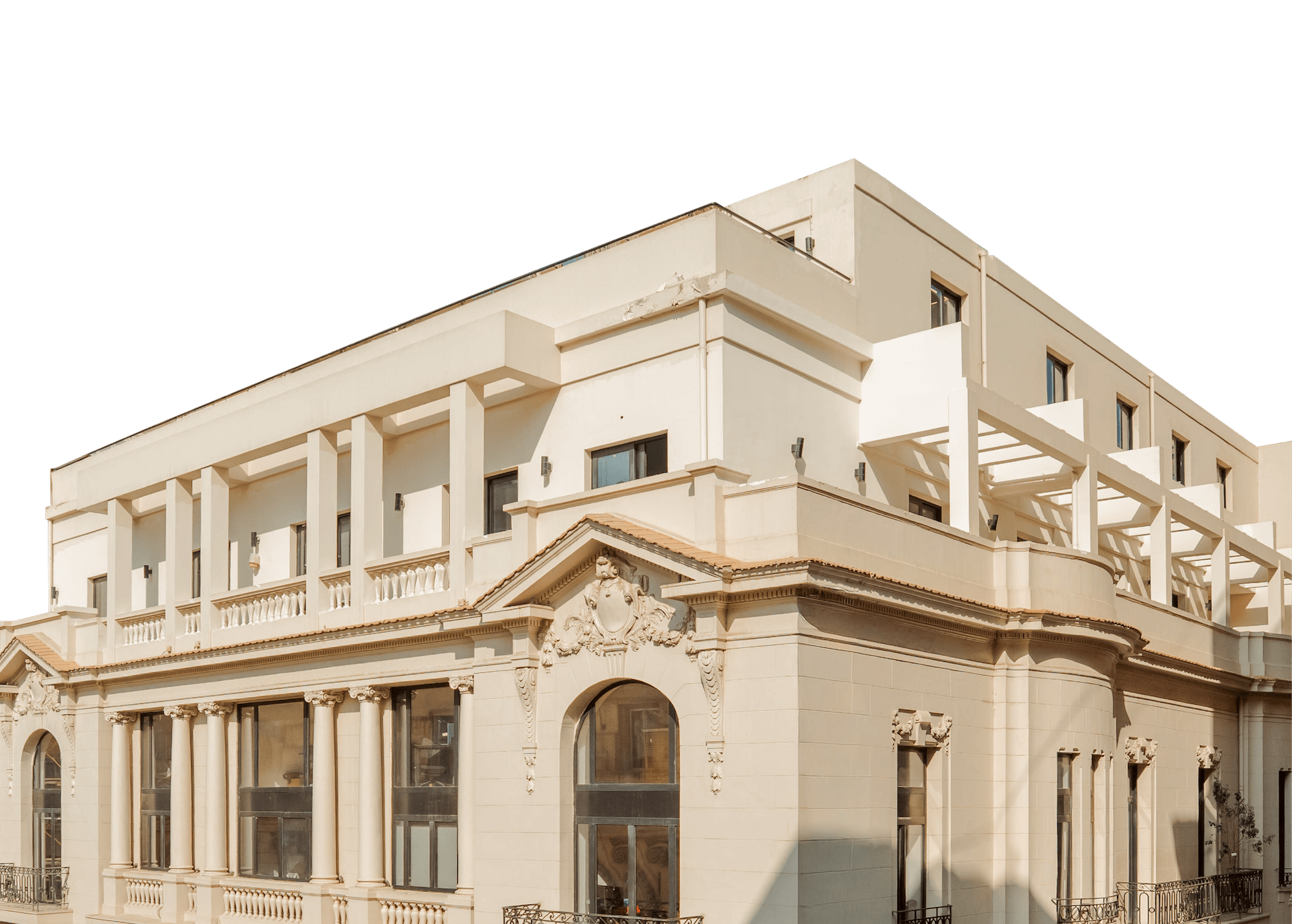 Located at 5 Al Fadl street, Consoleya, which was once The French Consulate, reflects a neo‐baroque architectural style, infused with minimal eclecticism. The building was moved from Galal Street in Azbakeya to its current location in 1925, when French architect Paul-Conin Pastour was assigned for the construction of the existing building. The result was a four-story gem, boasting a spacious garage, and an elegant rooftop.